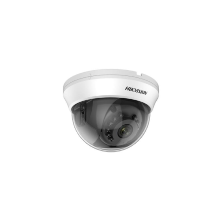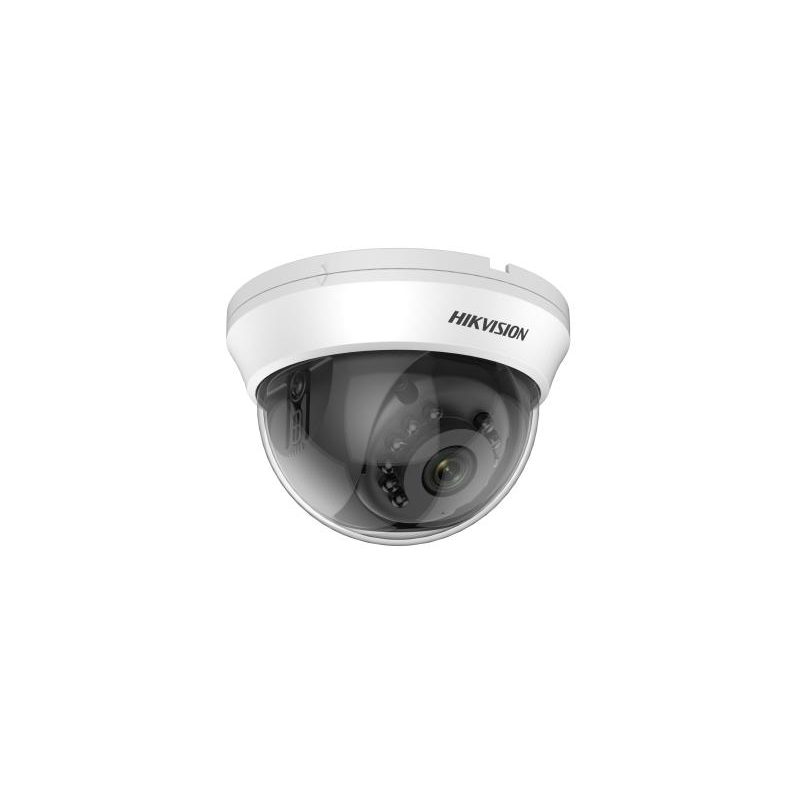 La cámara DS-2CE56H0T-IRMMF es una cámara domo fija para interiores de 5 MP con un alcance de infrarrojos inteligente de hasta 20 metros. Es compatible con 4 señales conmutables (TVI/AHD/CVI/CVBS)