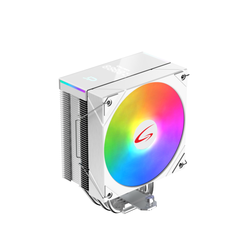El GameMax Gamma 500 Rainbow es un cooler de alto rendimiento con ventilador de 120 mm e iluminación fija RGB tipo Rainbow. Equipado con 4 heatpipes de cobre y un disipador optimizado, ofrece una excelente disipación térmica, ideal para gamers y usuarios que buscan eficiencia, estética y bajo ruido en su sistema.